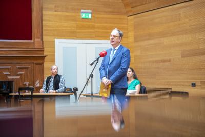 Tapssal fogadták az MTVA munkatársai a stúdióból éppen kifelé jövő Magyar Pétert