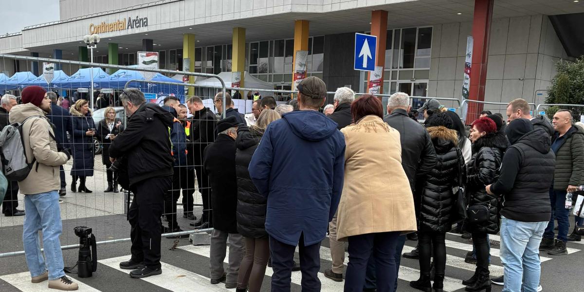 Összegyűltek az emberek a nyíregyházi DPK-nagygyűlésre, Menczer Tamás szerint Orbán Viktort nem külföldről fizetik