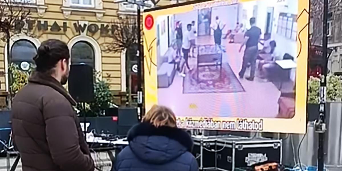 Az ellenzéki párt délelőtt tíz órától egy Nyugati téri kivetítőn tette nyilvánossá a nagyközönség előtt, ami eddig az influenszer Juhász Péter a YouTube-oldalán volt látható.