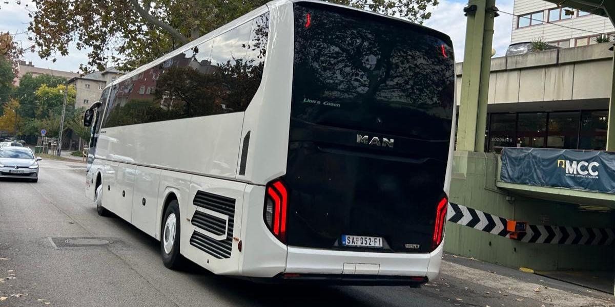 Filmvetítésre érkező diákok busza parkolt az MCC épülete előtt