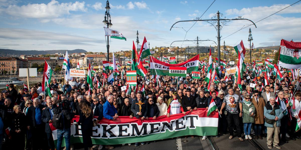 Október 23-án ismét Békemenetet rendezett a Fidesz-közeli civil szervezet, a CÖF-CÖKA Budapesten. A felvonulás az Elvis Presley térről indult a Margit hídon át a Kossuth térre, a résztvevők egyike mondta kollégánknak, hogy ha kell, négykézláb is végigmegy. Fotógaléria.