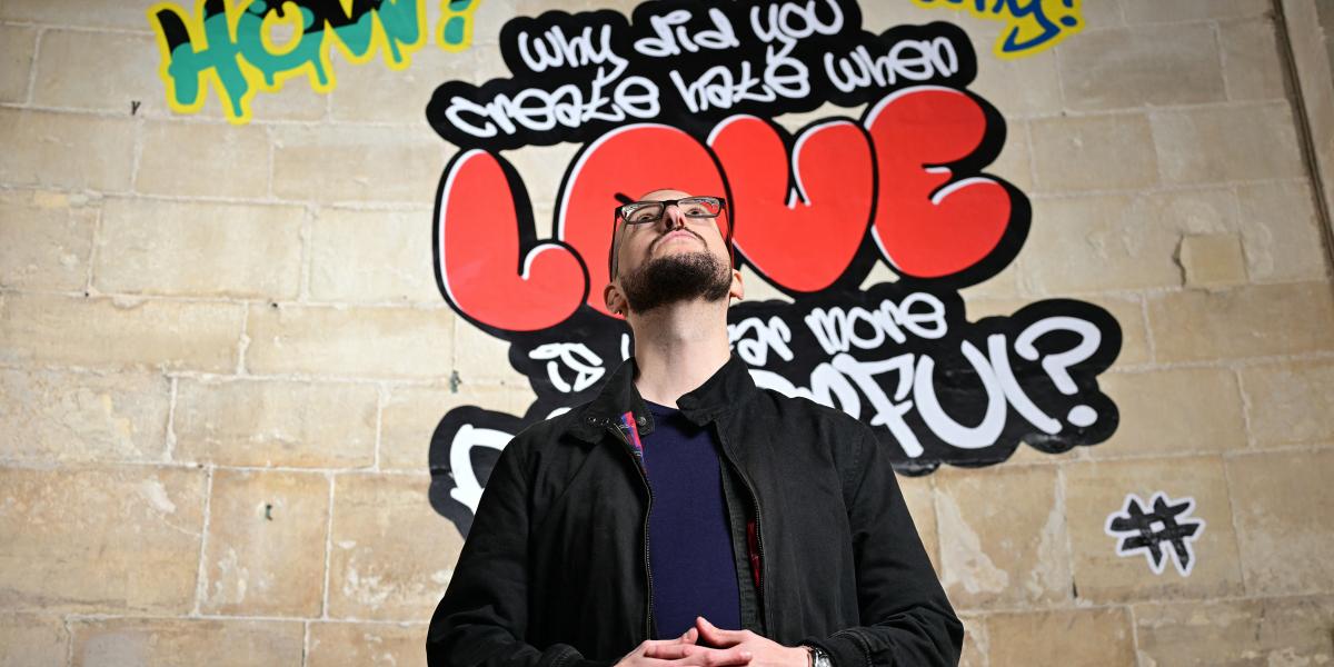 Különleges installációs kísérlethez nyerte meg a Canterbury katedrális anglikán püspökségét Alex Vellis brit–görög költő. A „Hallgass minket” projekt tagjaként graffitiket állítottak ki a délkelet-angliai székesegyházban.